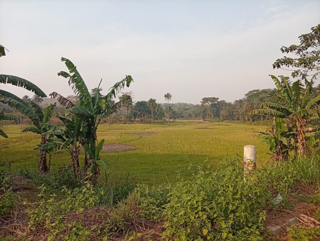 Sonne scheint durch Palmenblätter. Insekten fliegen durch die Luft und Vögel zwitschern und Vögel schreien, oder wie auch immer man ihre tieferen, lauten Klänge nennen mag. Der Wald wird dichter, so dicht, wie wir ihn auf der Reise bisher noch nicht erlebt haben. Denn wir befinden uns in Waldguinea, also in dem südlichen Zipfel des Landes. Hier ist sogar tropischer Regenwald und es ist einigermaßen hügelig. Der Wald wird jedoch durch die Holzkohlegewinnung, Buschfeuer, Holzwirtschaft und Bergbau gefährdet. Vor allem Buschfeuer sehen wir auf unserer Tour regelmäßig, manchmal brennen sogar unsere Augen davon und rauchiger Dunst hüllt ein ganzes Dorf ein. Wir wissen nicht genau, warum die Landstriche niedergebrannt werden. Landwirtschaft wäre ja am naheliegendsten, aber so ganz erschließt es sich uns nicht.