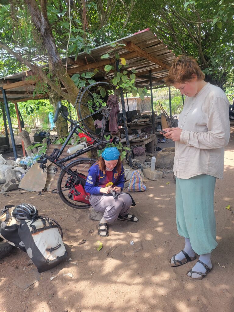 Wir finden, dass wir schon bald wieder nach Hause kommen und sehen die Reise ihrem Ende entgegenschreiten. Der Gedanke an unsere Heimkehr kommt häufiger. Auch Freunde finden, dass wir ja in kurzer Zeit wieder da sind. Noch 1,5 Monate. Da müssen wir uns um einiges kümmern, Clara und Selma suchen WG-Zimmer, Sarah schreibt Bewerbungen für ihren Master und Clara stellt ihren Semesterplan zusammen. Es sind noch 7 Tage Radfahren bis nach Benin, zwischendurch werden wir Projekte in Togo besuchen, um dann einen Monat in Benin zu verbringen.